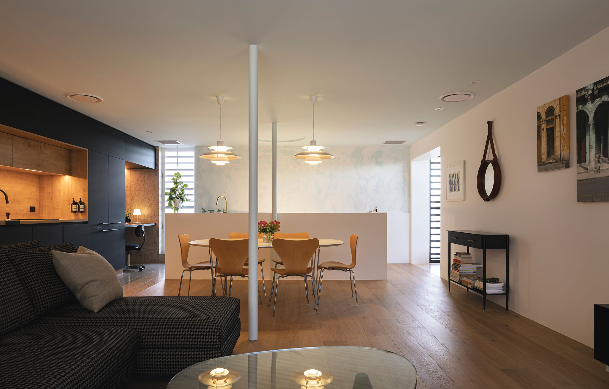 Our photography draws attention to the home’s layered character—balancing wide, medium, and detailed frames to reveal its context, materiality, and changing light. The visual tone references analogue film stock from the 60s and 70s, softening shadows and allowing a gentle bloom in the highlights. This treatment reflects the project’s design ethos: embracing its original structure while refining it with restraint and care.